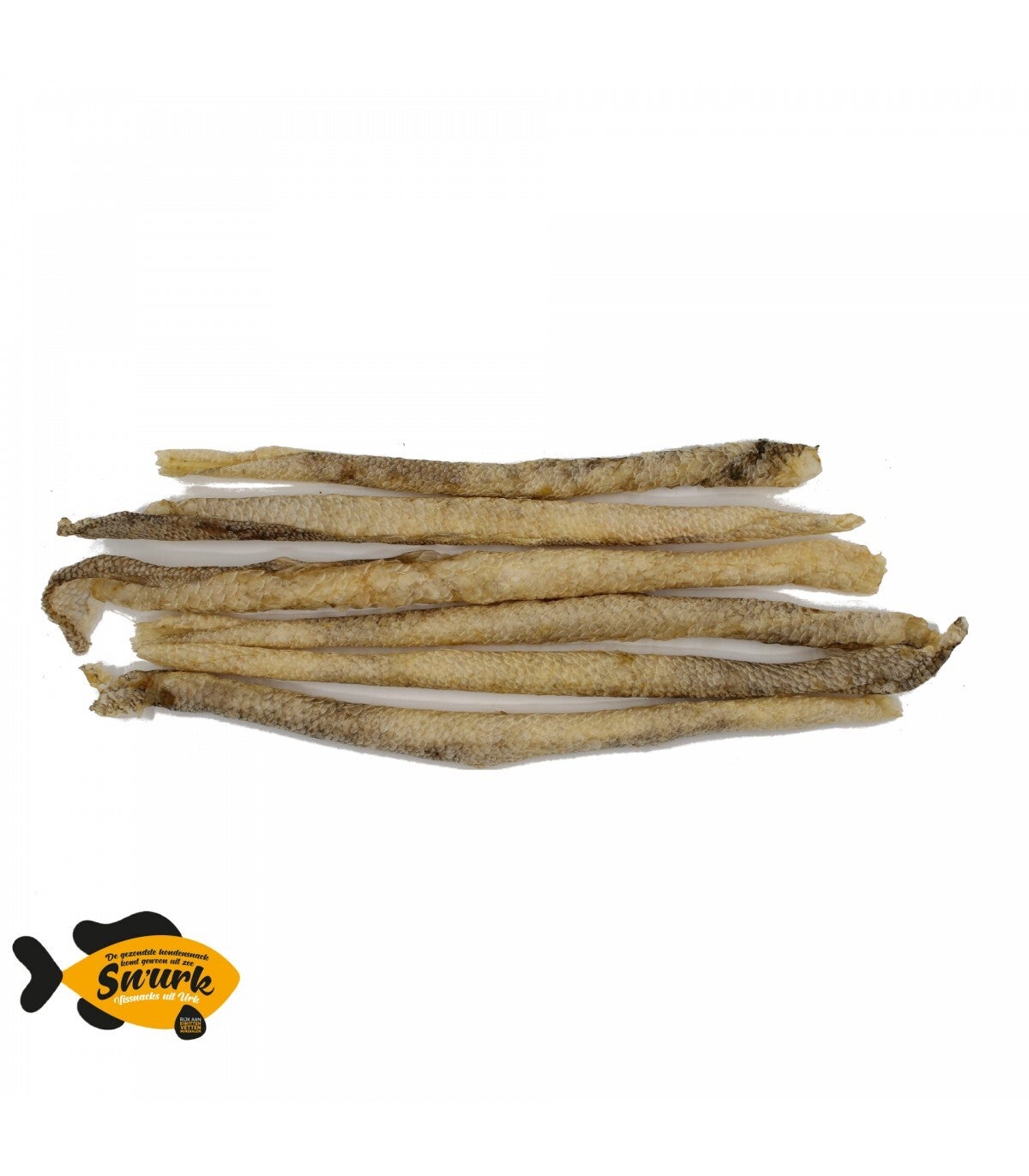 Knapperige en smakelijke rollen van roodbaarshuid , in 100 gram gaan minimaal 12 rollen. heerlijke beloningssnack.