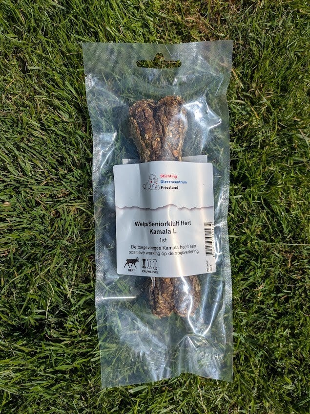 Welp/Seniorkluif Hert Kamala L is een harde kauwsnack met o.a. gemalen kamala. Kauwbeen Hertenhuid Kamala ondersteunt het lichaam van de hond in de strijd tegen wormbesmetting en maag- en darmklachten. Het heeft namelijk een anti-bacteriele en anti- paraistaire werking. Het kauwbeen is +/- 17 cm lang. De Welp/Senior Kluif Hert Kamala L is glutenvrij.